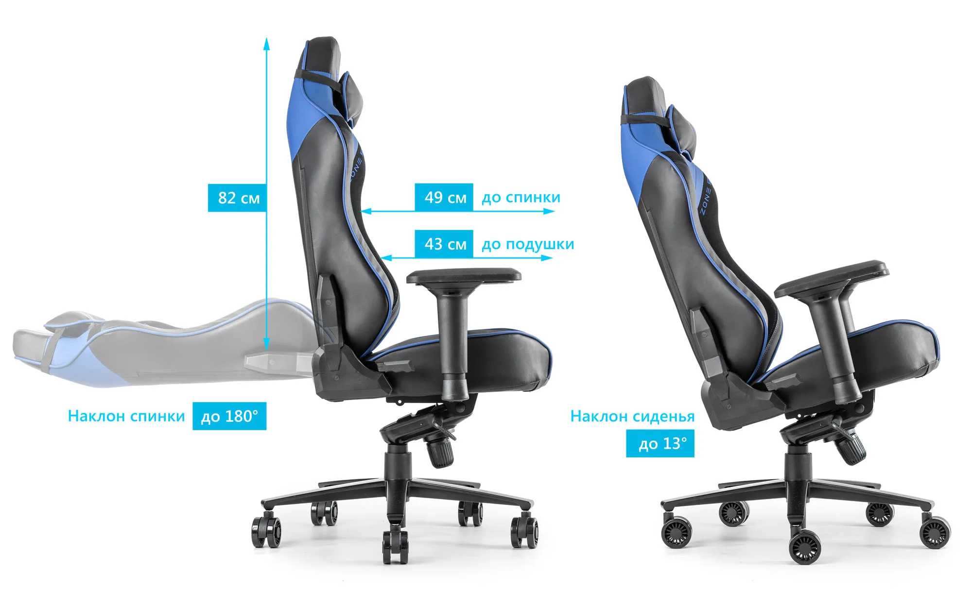 В геймерских моделях ZONE 51 спинка может регулироваться до 180° — расположиться в кресле получится даже полулежа