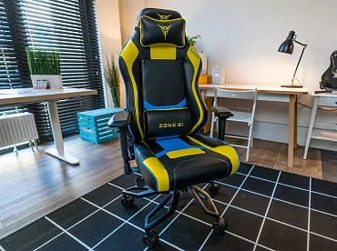 Тестируемое сегодня ZONE 51 ARMADA предлагает стальную раму, кастомизированные накладки, мягкую эко-кожу, усиленное основание, механизм качания и 4D-подлокотники.