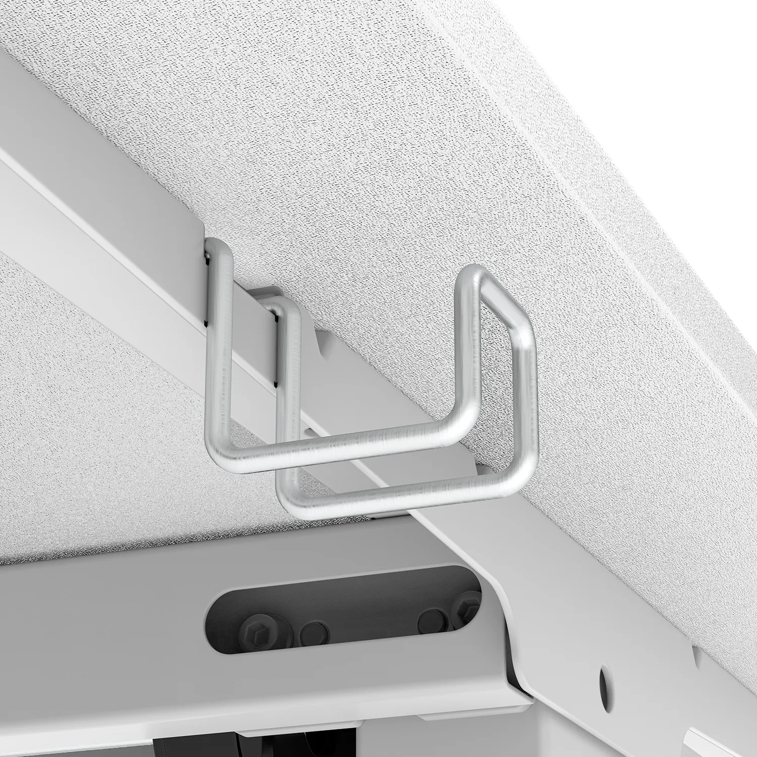 Провода – это хаос, который крадет твою концентрацию. Мы его уничтожили. Двухуровневая система организации скрывает все лишнее от глаз, сохраняя доступ к необходимым устройствам. Аккуратный кабель-канал с правой стороны столешницы принимает провода от мониторов и периферии, незаметно направляя их вниз. Там их подхватывает просторная тканевая корзина – никаких висящих шнуров, визуального шума или риска зацепиться ногой. Только чистое пространство, которое выглядит безупречно и настраивает на абсолютный фокус. Порядок на столе – порядок в мыслях.