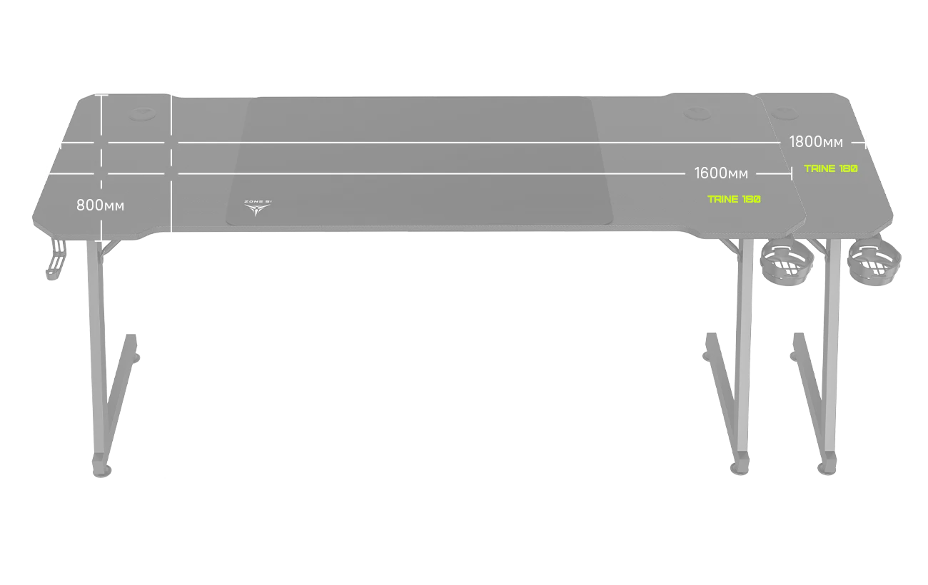 Стальная рама толщиной 2 мм с роботизированной сваркой и покрытием из порошковой краски позволяет выдерживать максимальную нагрузку до 100 кг, что делает TRINE идеальным для размещения множества периферийных устройств и аксессуаров.